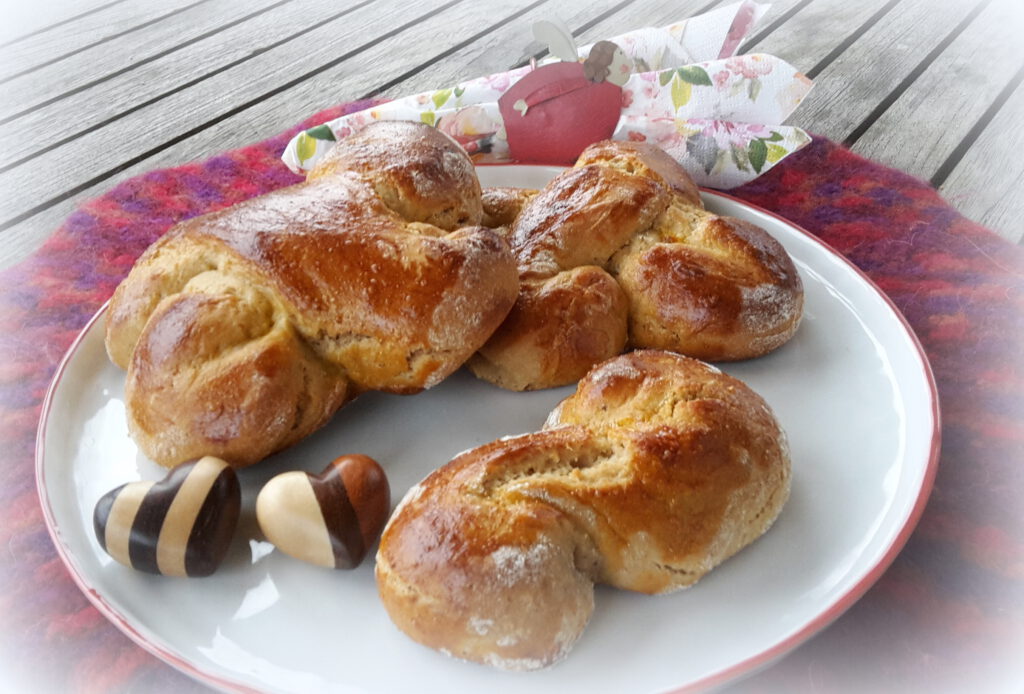 Nach dem Backen das fertige Gebäck noch mit Zuckerwasser bestreichen und mit Mandelblättchen belegen. Nein, nein, das mache ich schon lange nicht mehr, es ist mir viel zu süß. Meine Neujährchen in diesem Jahr sind vegan und ich habe sie vor dem Backen mit ein wenig Haferdrink bestrichen.