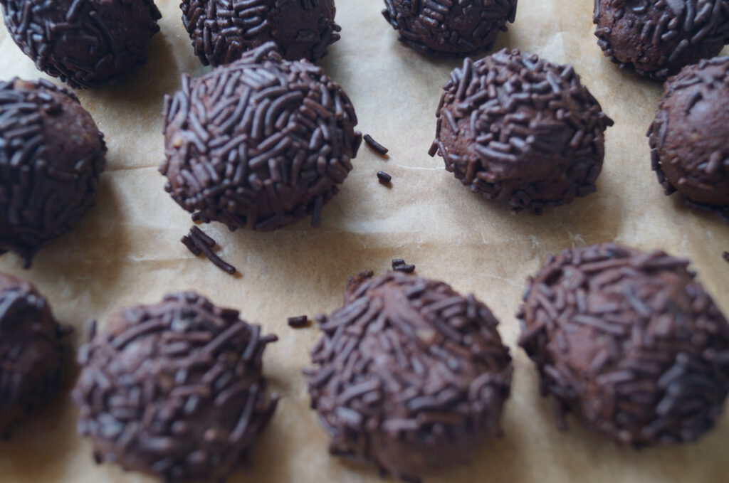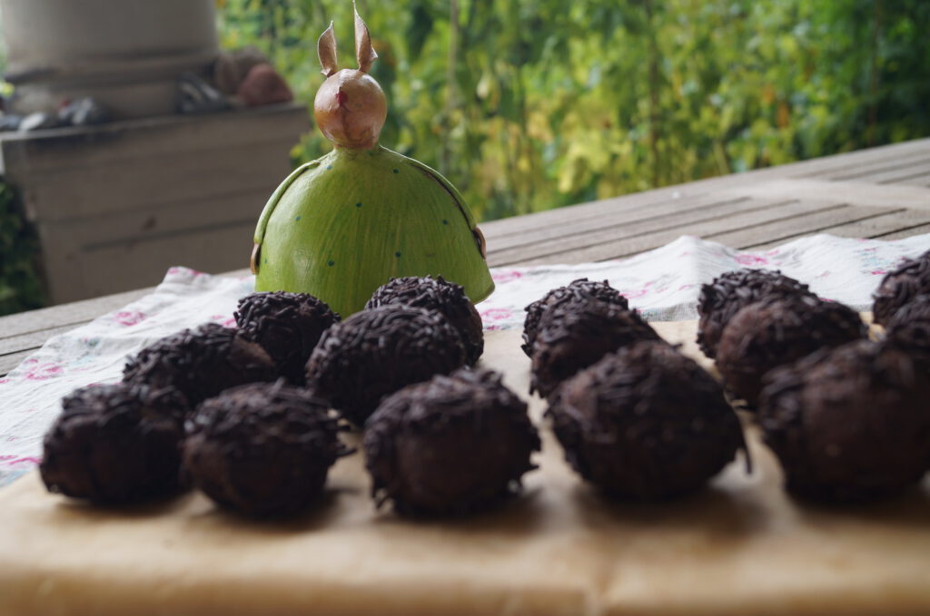 Und natürlich werden sie zum Abschluß in Schokostreusel gewälzt. Auch meine Gäste hatten beim Anblick der Kugeln ein Déjà-vu. Zum Mittagsmatcha eine Kugel und mein Herz springt vor Freude.