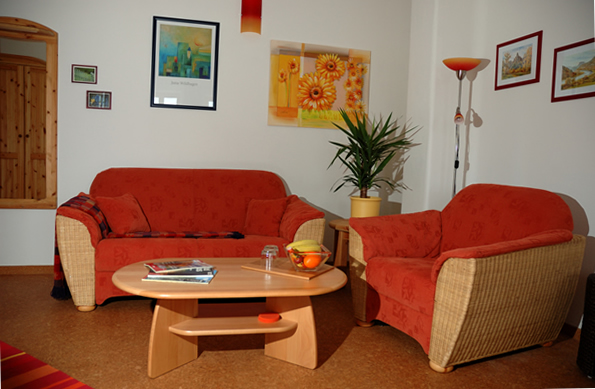 Das geräumige, 28 Quadratmeter große und helle Gästezimmer ist mit einem komfortablen Tageslichtbad, Naturholzmöbeln, einer Sitzecke und mit Sat-TV ausgestattet.
