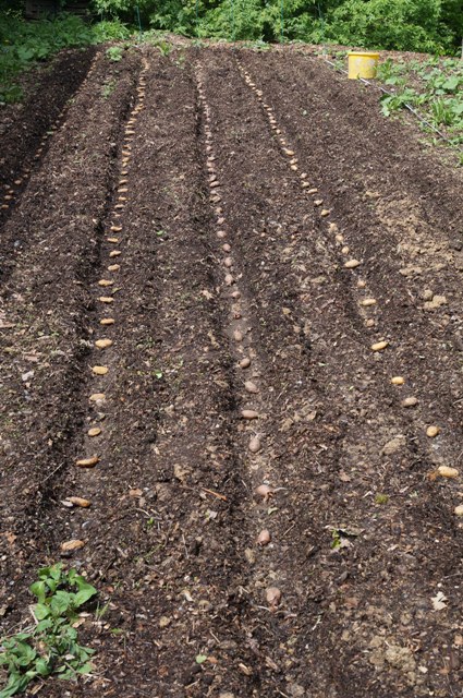 Kartoffeln beschäftigen uns augenblicklich. Noch verspeisen wir unsere Ernte vom letzten Jahr. Die gelegten Frühkartoffeln kommen nicht aus dem Quark, ob sich eine Wühlmaus mit Familie an unseren Pflanzkartoffeln bedient und sich unterirdisch über diese Köstlichkeiten freut? Auf jeden Fall, haben wir noch einmal an einer Stelle nachgelegt, die eigentlich nicht für den Anbau von Kartoffeln vorgesehen war.