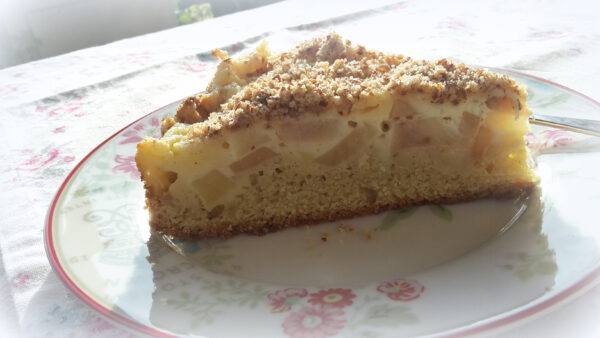 Welch ein Geschenk ist so ein selbstgebackener Apfelkuchen. Der “Rheinische Winterrambur” kam bei diesem Kuchen zum Einsatz. Der gepflückte Apfel schmeckt in den Monaten von Dezember bis März so richtig lecker, denn dann erst bekommt er seine Genussreife. Für diesen Kuchen habe ich das letzte Fallobst dieser Sorte verwendet.