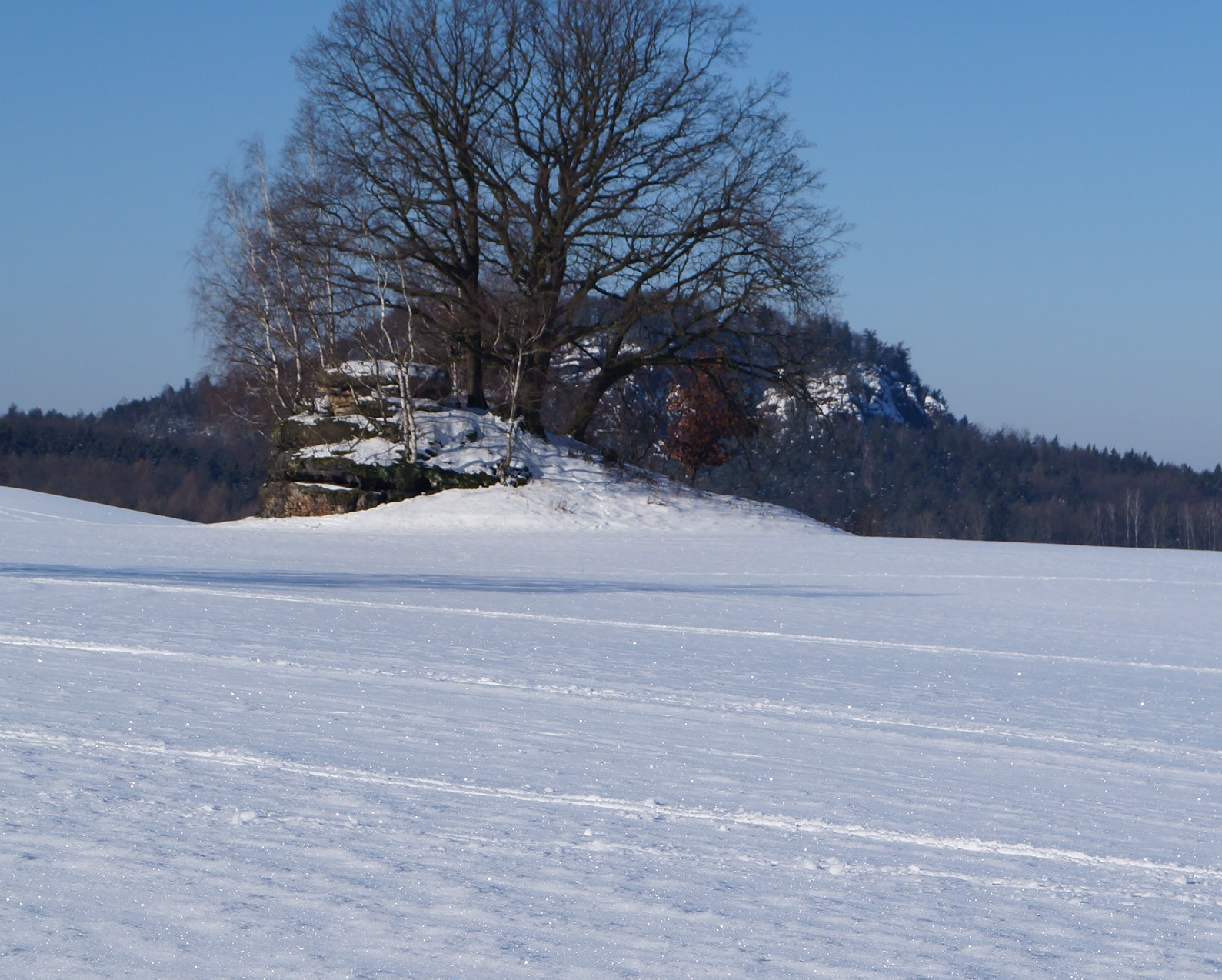 Heute möchte ich Sie ein wenig durch diese verzauberte Winterlandschaft mitnehmen. Ein Blick zurück auf unser Haus An diesem gestrigen Sonntag gab es nicht nur Schnee, sondern auch einen blauen Himmel und somit einen herrlichen Sonnenschein. Blick zum Rauenstein Da waren wir dann nicht mehr zu